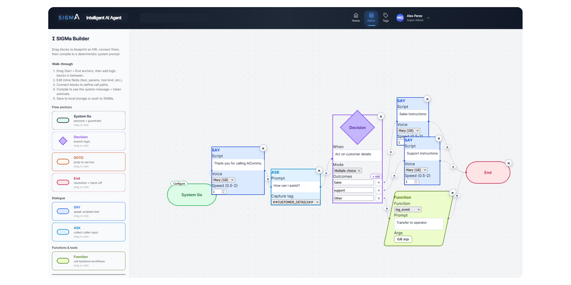 SIGMa is a fully trainable AI agent that listens and understands in real-time, analysing sentiment, intent, tone, and compliance with impressive accuracy. It autonomously handles inbound and can initiate outbound calls, acting instantly on outcomes by transferring, logging, or escalating as needed.